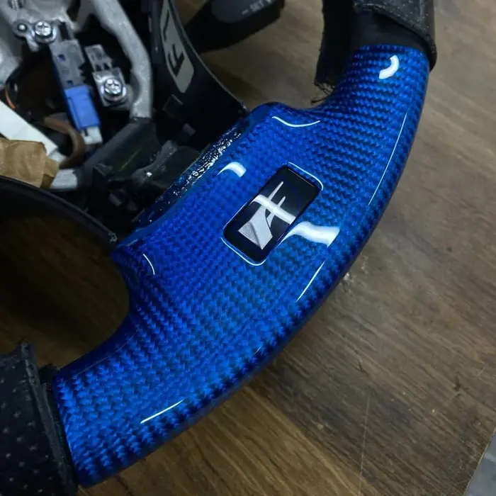 Эксклюзивные рулевые колёса в стиле 'Кованый карбон' – лёгкие, стильные и невероятно прочные! Мы создаём уникальные рули по индивидуальному заказу для любой модели автомобиля. Настоящий кованый карбон с хаотичным рисунком волокон придаст вашему салону неповторимый спортивный шарм.